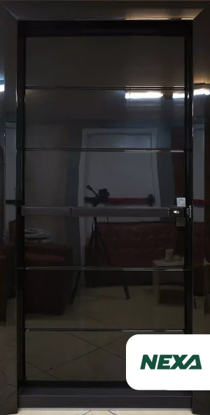 The NEXA Black Glass Fire-Rated Door is a modern and elegant safety solution designed for architectural spaces requiring both aesthetics and performance. With its certified 90-minute fire resistance, customizable decorative surfaces, and robust steel structure, it’s an ideal choice for server rooms, electrical rooms, and emergency exit areas in modern commercial, residential, and industrial buildings.