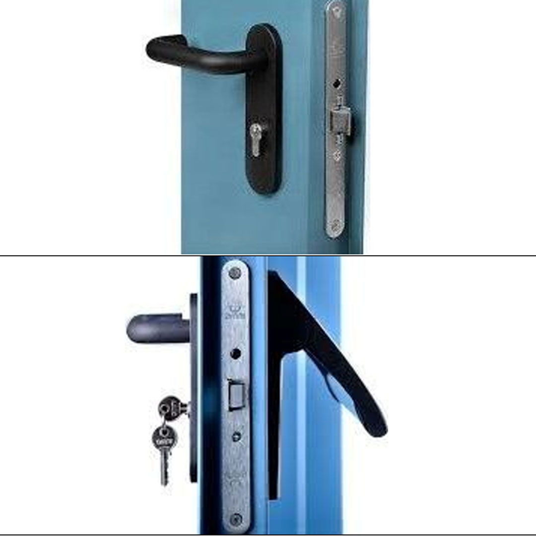 This system uses a built-in mortise lock, providing much higher security than standard lockable handles.